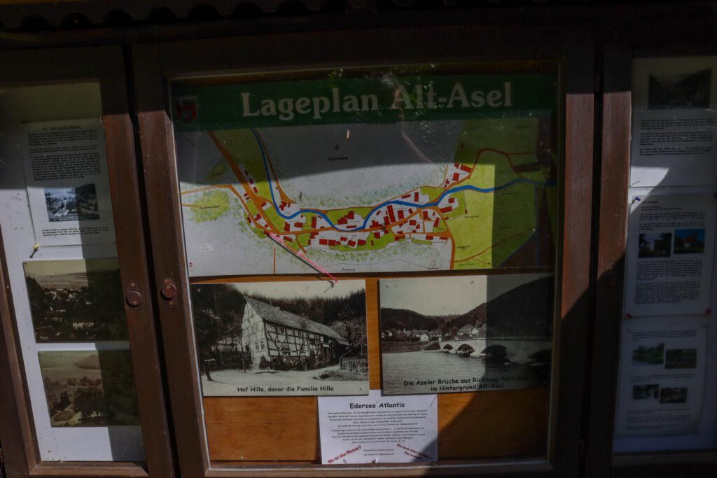 An einer Gedenkmauer für Alt-Asel, das im Edersee versunken ist mache ich eine kleine Rast. Recht interessant, was hier über den Ort zu Lesen ist. Ein Teil des Friedhofs befindet sich noch oberhalb der Wasserlinie.