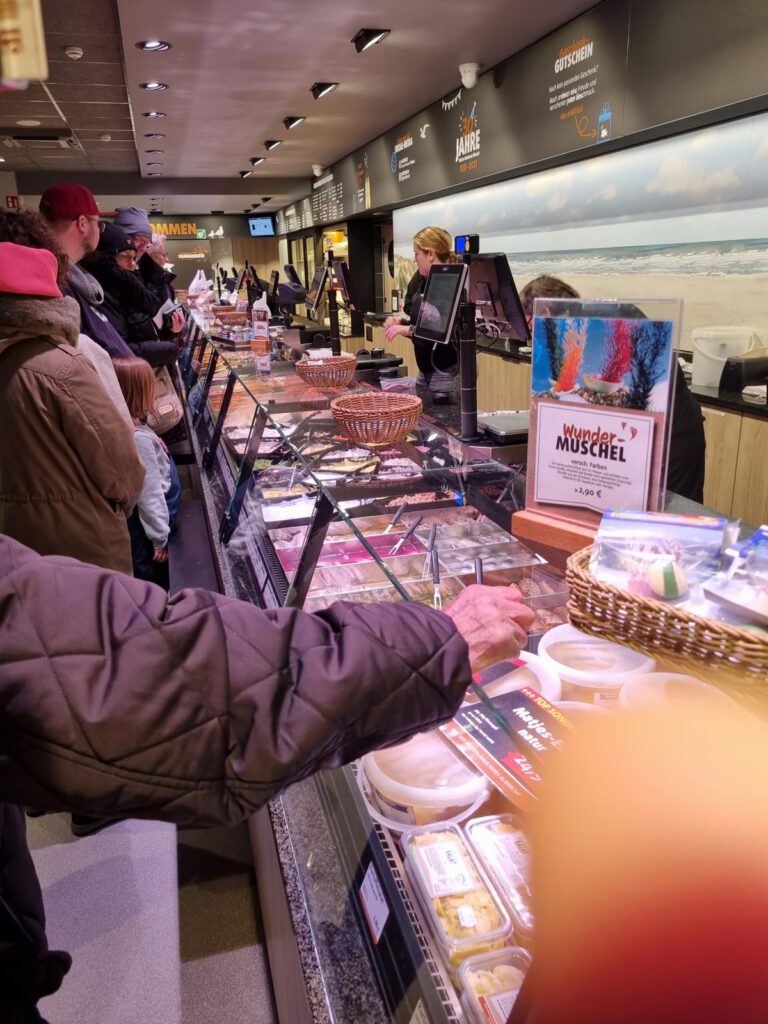 In der Fischbude nebenan nehmen wir uns noch Markrelenfilets für heute Abend mit.