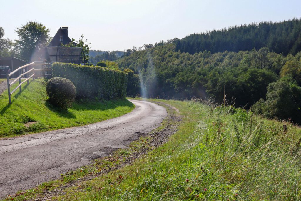 Wir biegen kurz danach in ein Seitental ab und radeln nun entlang des Pämker Baches nach Breckerfeld. Ein winziges Sträßchen, aber hoppla, hier wohnen Leute und die kommen einem in den engen Kurven auch mal entgegen.