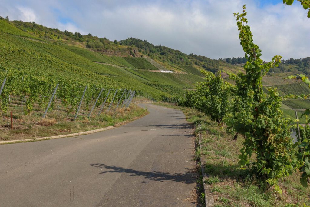 Zuerst einmal gehts vom Bus weg sehr bald wieder mal entlang der Straße. Schade. Wir haben natürlich fast immer die Möglichkeit in die Weinberge auszuweichen. Zumeist wunderschön mit Ausblick auf die Mosel. Aber man muss sich auch die Zeit nehmen wollen….