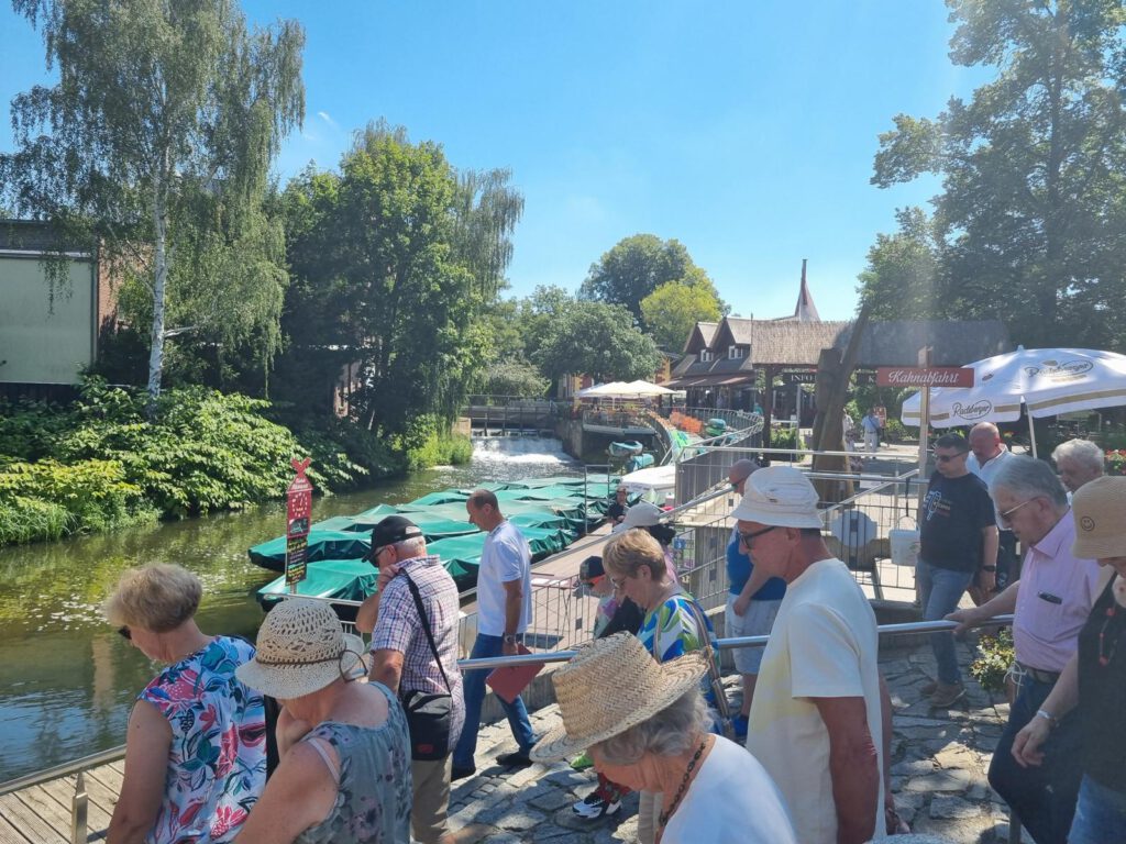 Nach dem Frühstück machen wir uns mit den Rollern auf die Socken zum Burger Hafen an der Hauptspree. Wir wollen heute ganz romantisch mit dem Kahn eine Kanalfahrt unternehmen. Am Hafen angekommen erfahren wir: nächste Abfahrt um 12 Uhr.