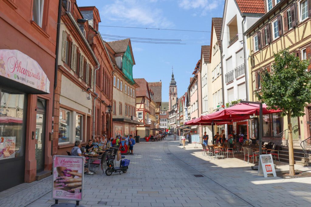 In Tauberbischofsheim legen wir eine kleine Rast ein. Es ist sauheiß mit über 30 Grad. Ein kleiner Stadtbummel ist trotz der Hitze aber auch noch drin …
